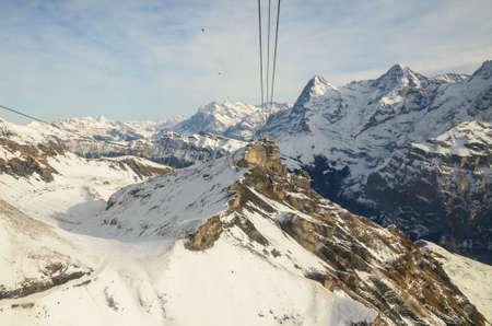 Cable Car station with View of Swiss Alps in winter, Switzerland.