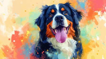 Cute happy dog portrait in spring sunny day. Bernese mountain dog