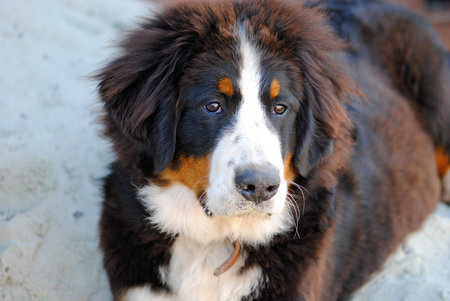 portrait of a charming puppy of breed Bernese Mountain Dog