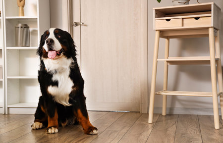 Bernese Mountain Dog puppy stuck out its tongue. High quality photo