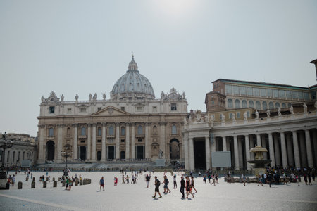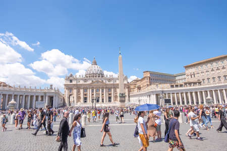 VATICAN CITY, VATICAN - JULY 14: St. Peter's Basilica and St. Peter's Square on July 14,2019. St. Peter's Square is a plaza located in front of St. Peter's Basilica.