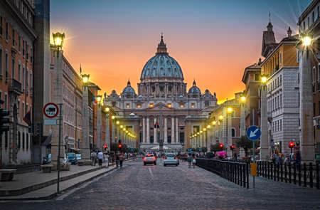 Dome of Saint Peter Basilica at sunset, Vatican City, Rome Italy