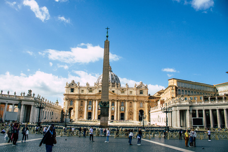 Vatican City Italy October 18, 2019 View of unknown people visiting St Peter's Square at Vatican City in the afternoon