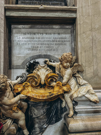 Interiors and details of St. Peter's Basilica, Rome, Italy