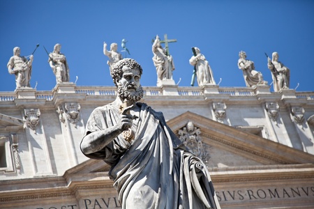 St Peter statue in St. Peter Square (Rome, Italy) with blue sky background
