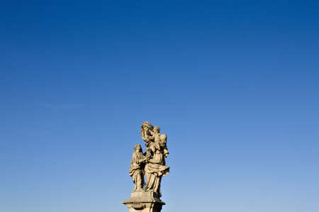 Isolated statue with pigeons in the Charles Bridge (Prague, Czech Republic, Europe)