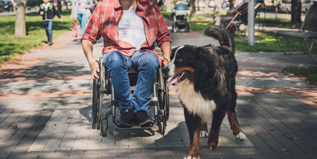 bernese mountain dog in the park in the summer for walks in ukraine, purebred dog, training dog