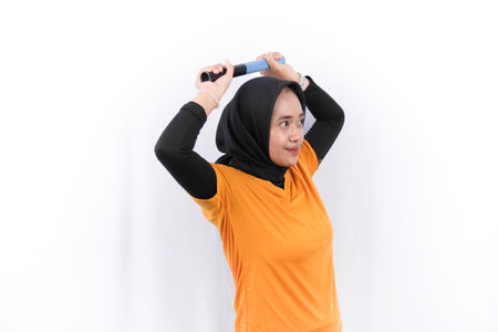 Indonesian woman wearing hijab doing sports game