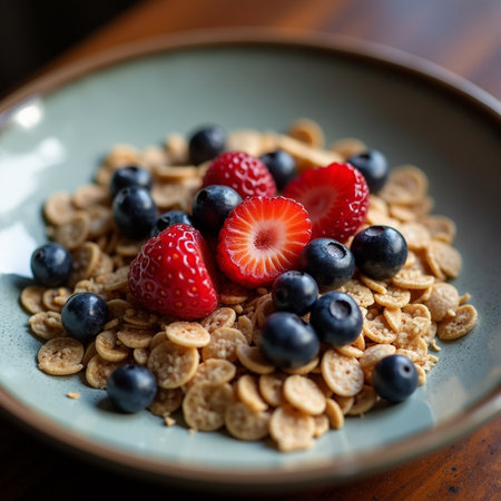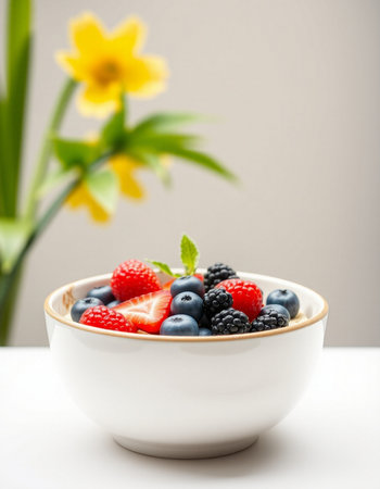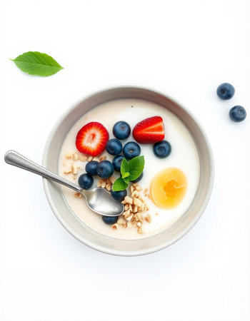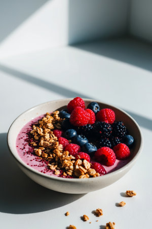 Enjoying a healthy breakfast bowl with mixed berries, Greek yogurt, and honey for energy