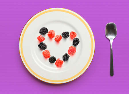 Blueberries and raspberries, healthy forest berry fruit, top view