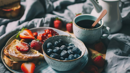 A peaceful morning moment with black coffee, sourdough toast, and a side of fresh berries.