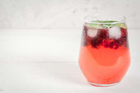 Refreshing summer drink with berries and ice on a white background