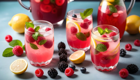 raspberry and lemon lemonades served with different berries
