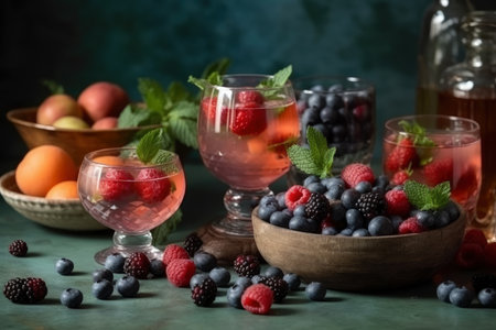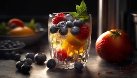 Organic berry cocktail with fresh blueberries and mint leaf garnish generated by artificial intelligence