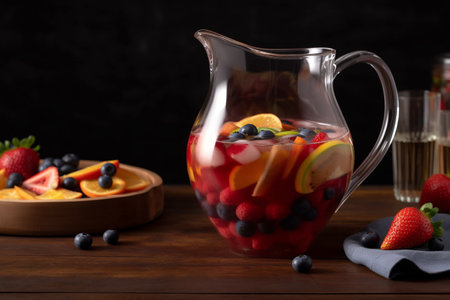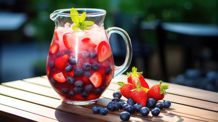 Refreshing fruit punch combines summer fruits in a colorful pitcher, perfect for sunny gatherings.