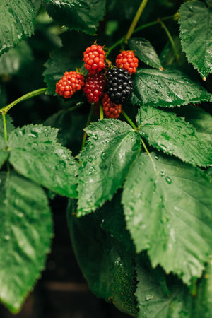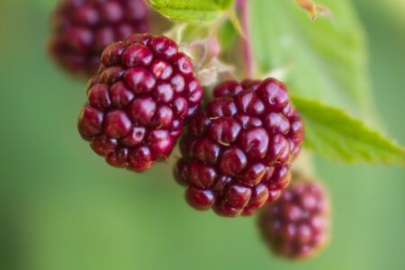 Black raspberry Rubus occidentalis of berries ripening closeup
