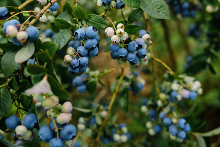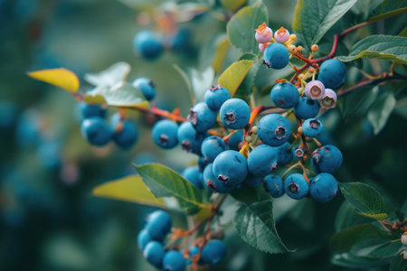 Organic blueberry bush, ripe fruit on twig, beauty in nature generated by artificial intelligence