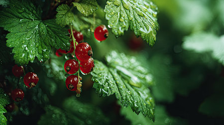 This image showcases lush green leaves adorned with bright red berries, emphasizing the beauty of nature. Perfect for enhancing designs related to gardening or organic themes.