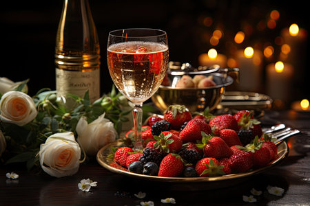 Elegance champagne, strawberries and sophisticated celebration., generative AI