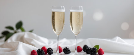 AI Generated. Festive Sparkling Champagne Flutes with Blackberries and Raspberries