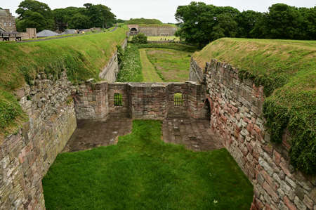 A view of the medieval old town defensive wall which surrounds the Northumberland town of Berwick Upon Tweed.