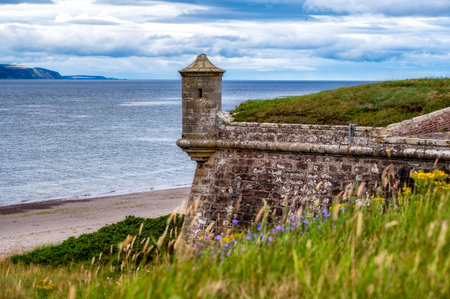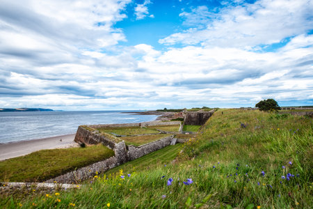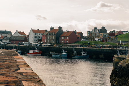 Dunbar, East Lothian , scotland - August 13th 2023 View of Victoria Harbor and Dunbar Castle in Dunbar, Scotland. High quality photo