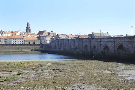 Berwick's Old Bridge and Town hall Spire, at Berwick upon Tweed the most northerly town in England and is located in Northumberland at the mouth of the River Tweed just below the Scottish border