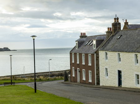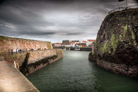 A view across the harbour at Dunbar in East Lothian in Scotland