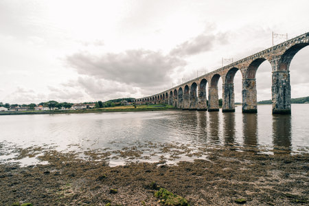 The Royal Border Bridge at spanning the river Tweed at Berwick on Tweed near the border with Scotland in Northumberland. High quality photo