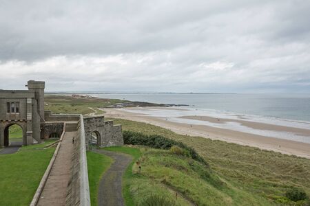 BAMBURGH, NORTHUMBERLAND, ENGLAND, UK - SEPTEMBER 10, 2017: View of a beach from Bamburgh Castle in Northumberland, England, UK.