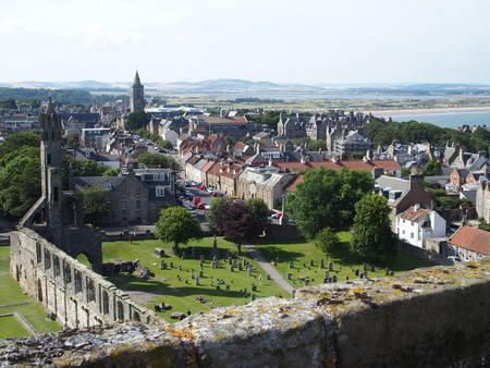 St Andrews city in Scotland with view on ruins of gothic cathedral