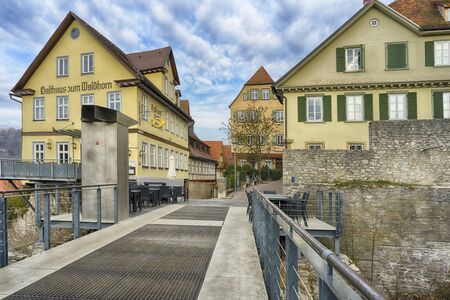 Schwaebisch Hall, Germany - 19 February 2019: The streets of Schwaebisch Hall, Baden Wuerttemberg is a state in southwest Germany
