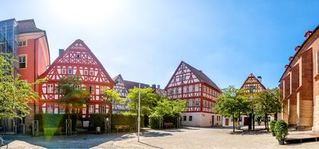 Gothic half-timbered houses - picturesque view in the Schwabisch Hall city Old town, Germany