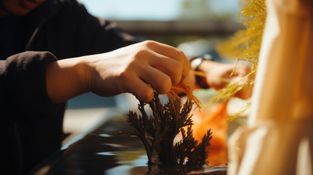Diverse seaweed species being cultivated in underwater gardens, promoting marine biodiversity.