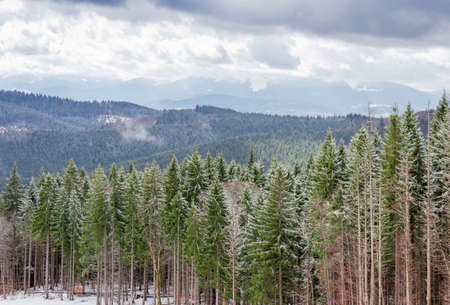 Picturesque landscape with fir forest in The Carpathians, Ukraine