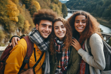 Generative AI : Two friends are taking a photograph outdoor