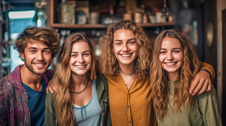 Diverse group of friends, smiling and laughing together, young and active teenagers, AI generative