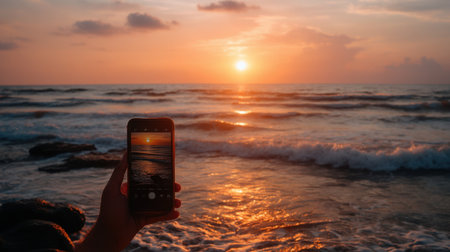 incredibly beautiful dawn frame on the sea on your phone while traveling
