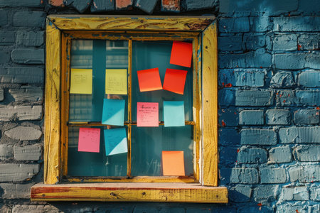 A striking blue window frame displays vintage photos, capturing the essence of street life and urban scenery. This artistic composition evokes nostalgia and charm.