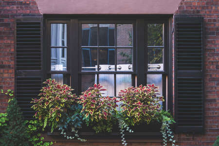 A charming vintage window adorned with flower pots and framed photos creates a cozy atmosphere, inviting natural light and warmth into the room.