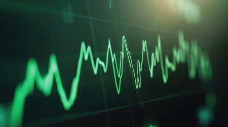 Glowing green digital financial chart displaying stock market trends and data analysis