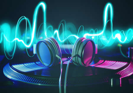 Abstract music background with sound wave and notes. 3D Rendering