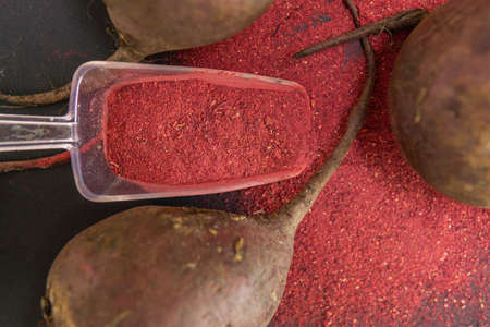 red beet, Beta Vulgaris subspecies. Vulgar Conditiva contains a very intense red dye. flour