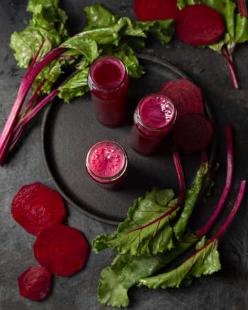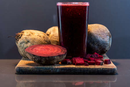 Beet juice (Beta vulgaris). Sugar beet is a herbaceous plant in the Kenopodiaceae family. The tuberized neck serves, in addition to culinary purposes, for the production of sugar (sucrose).