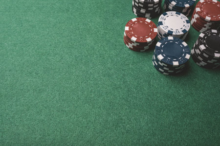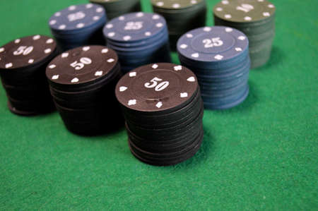 Poker playing chips on a green table