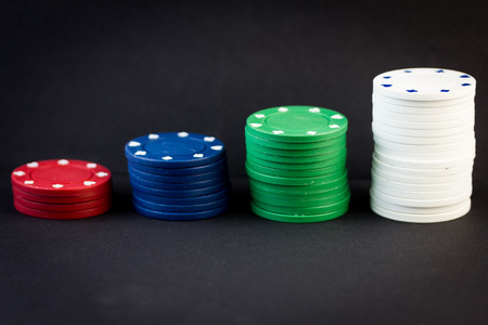 Poker chips stack in a row