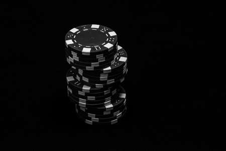 Casino gambling chips isolated on black reflective background