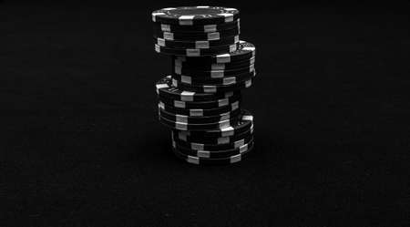 Stack of poker chips on black background.