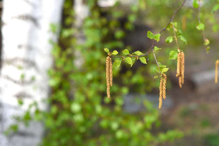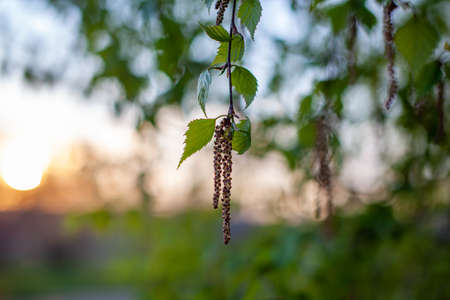 Spring allergy season with young birch catkins pollen