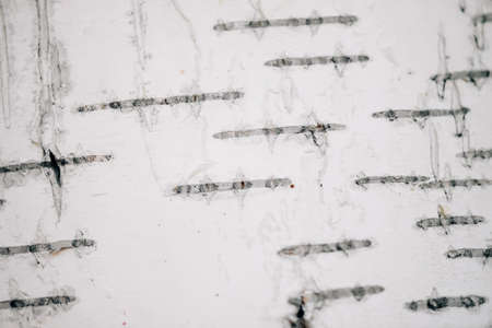 White nature background of birch bark close-up. Plane of birch trunk surface. Tree textured backdrop. Detailed natural texture of birch tree stem. Abstract mock-up. Background with copy space.